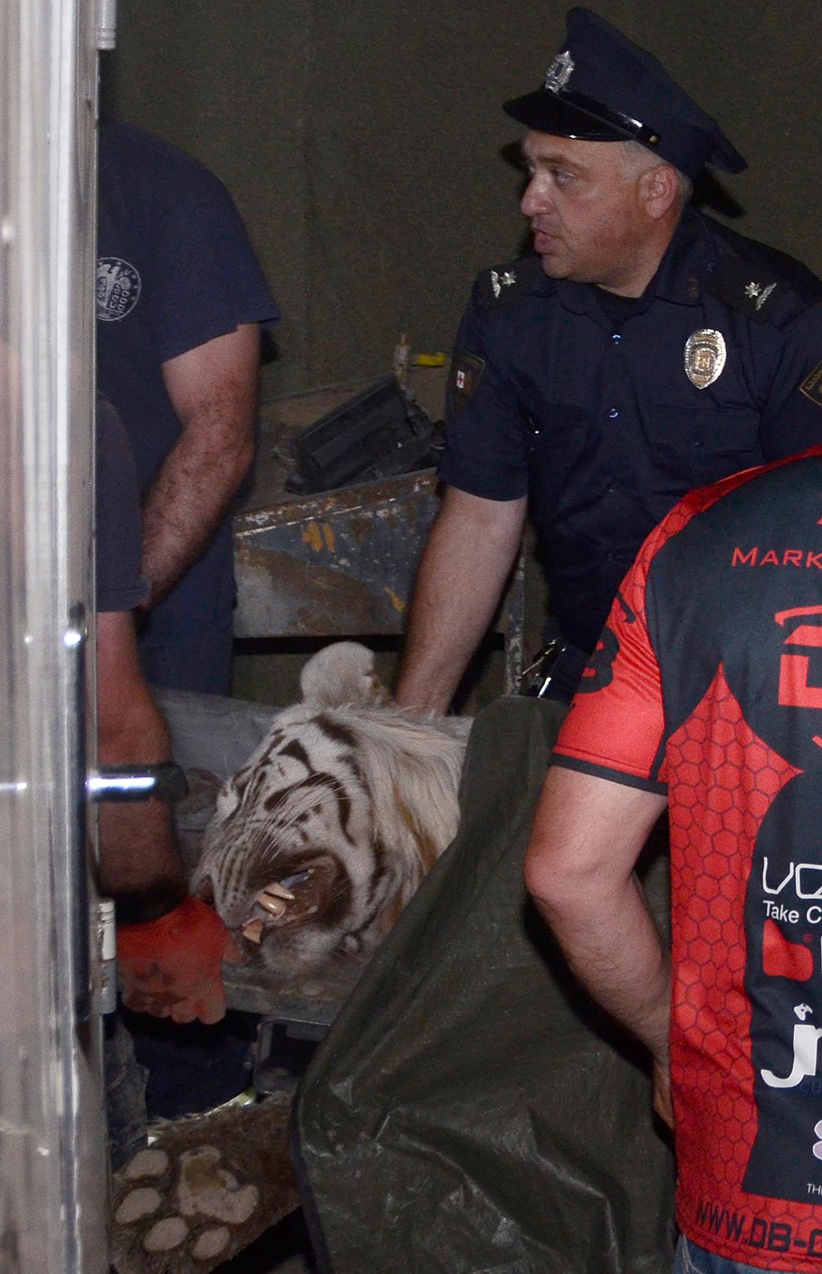 Um tigre branco que escapou do zoológico de Tbilisi, a capital da